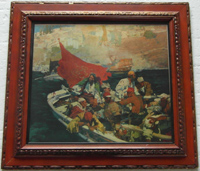 Arts & Crafts circular stained glass panel attrib. William J Neatby